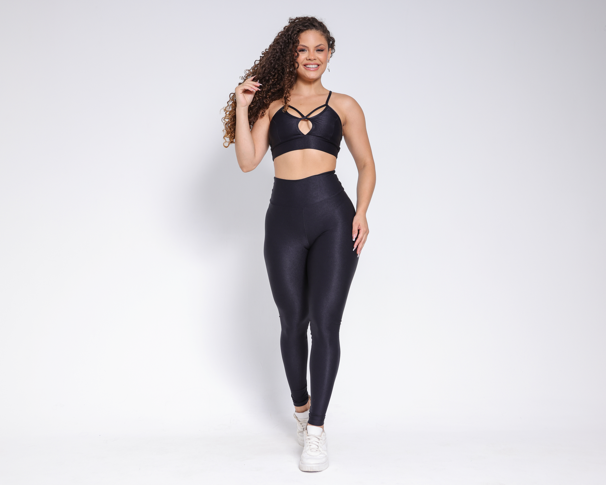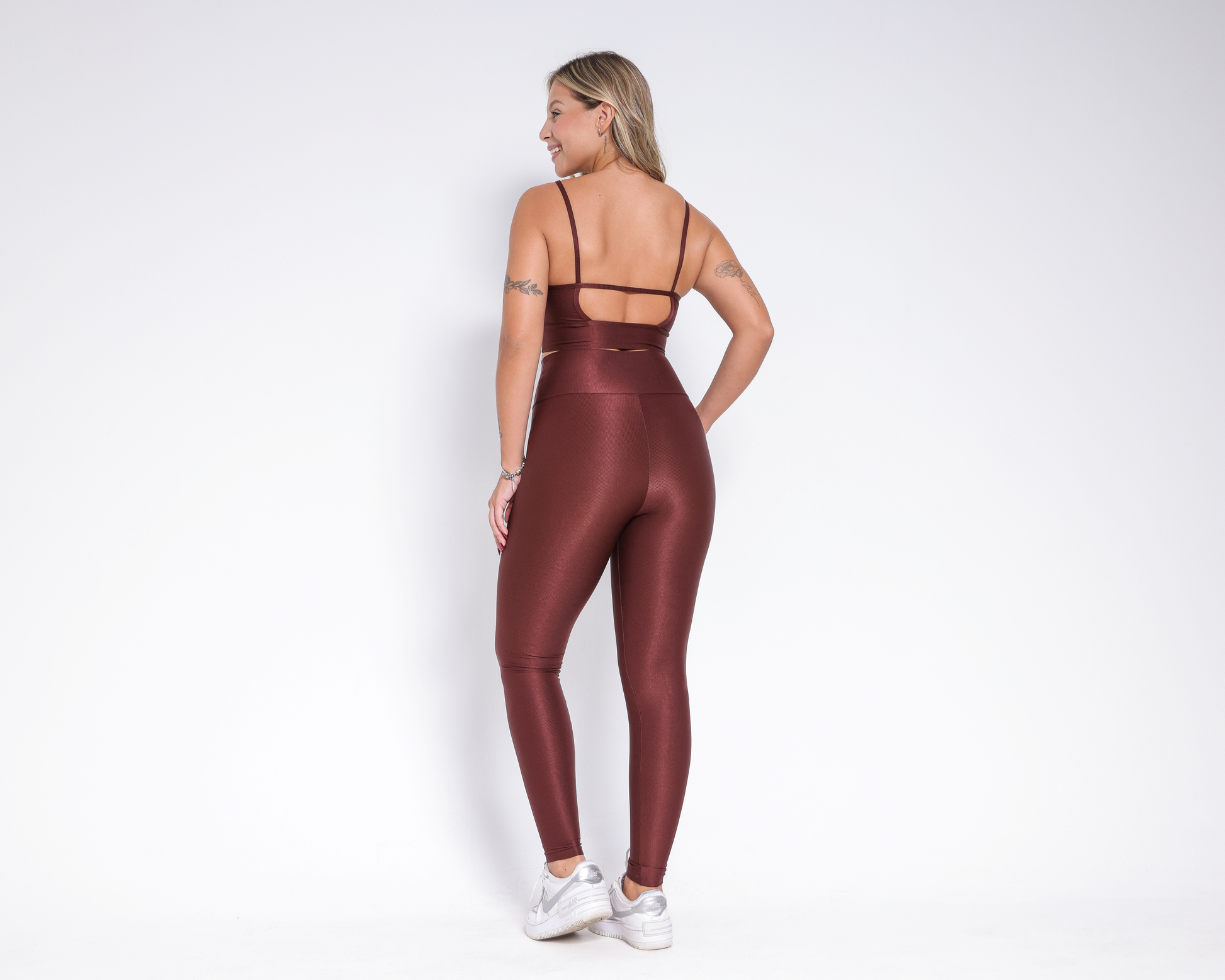 Stylish Design: The hi-shine 2-piece gym set features a trendy design that adds a touch of flair to your workout attire. |