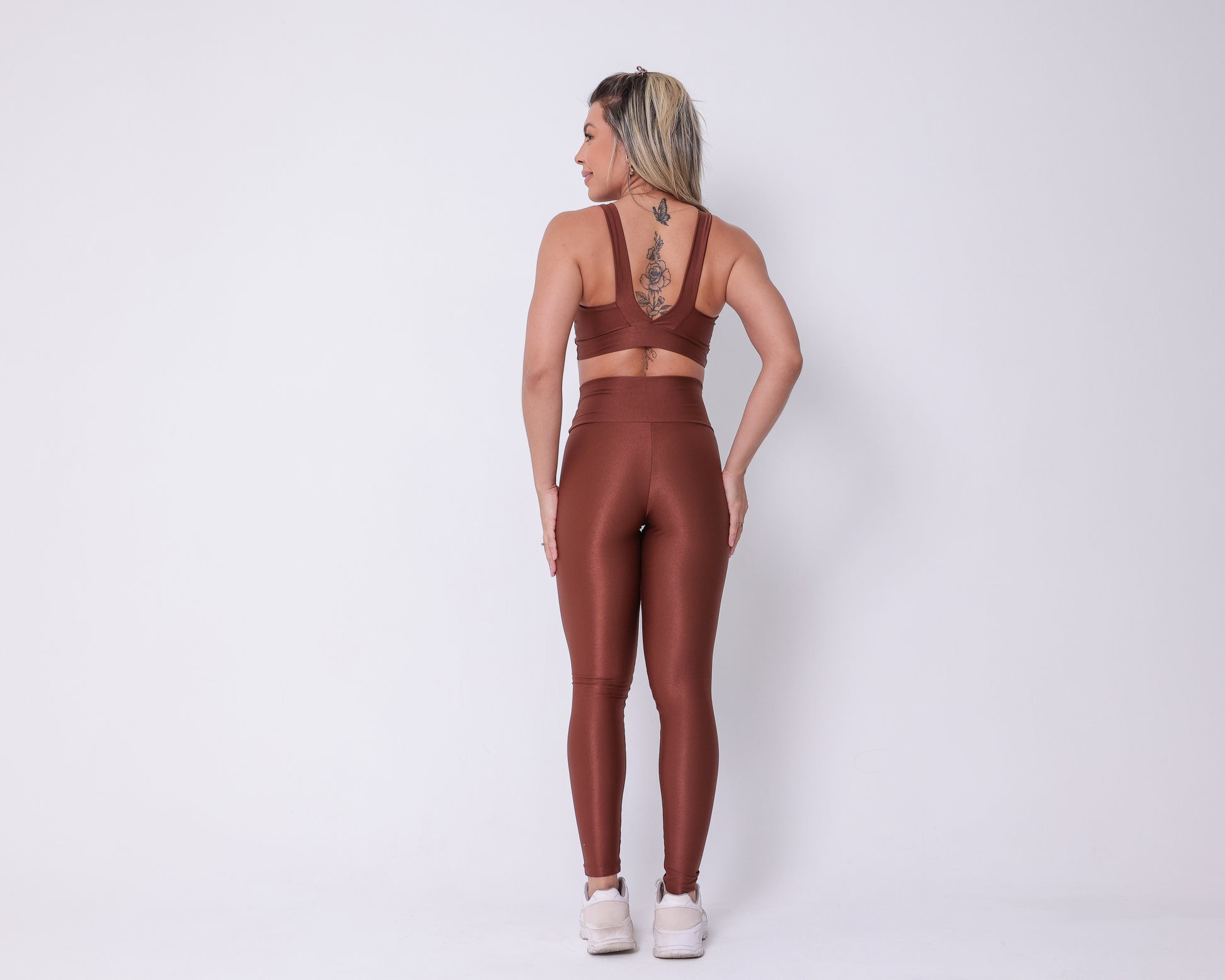 Stylish Design: The hi-shine 2-piece gym set features a trendy design that adds a touch of flair to your workout attire. |